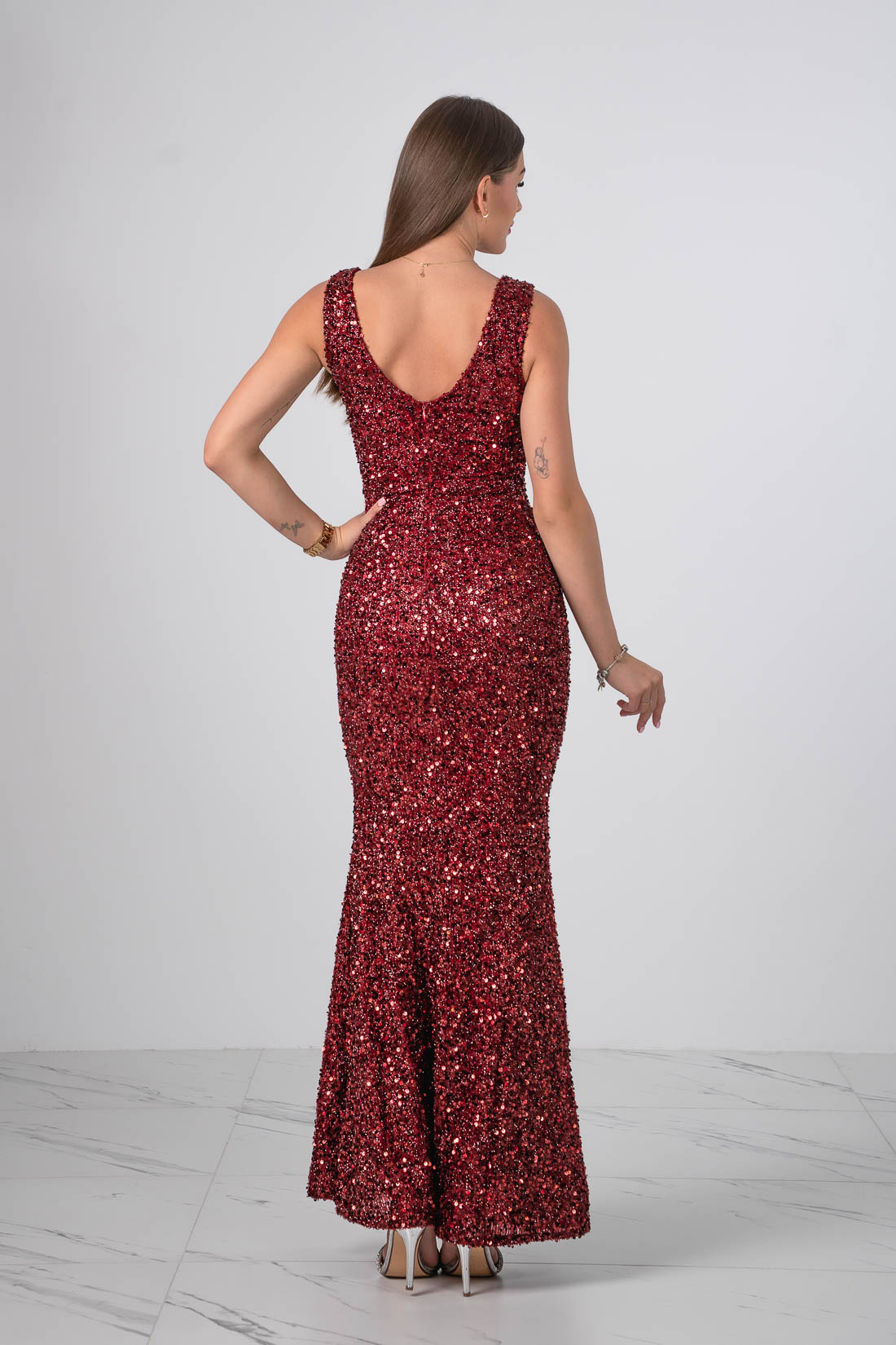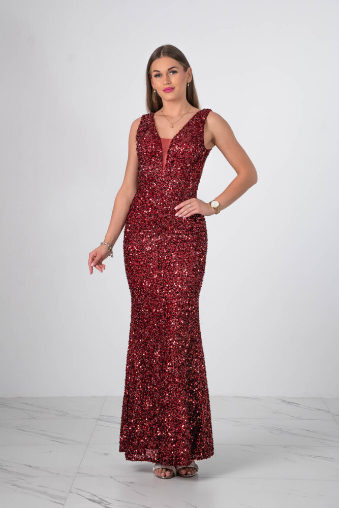 SUKIENKA CEKINOWA O DŁUGOŚCI MAXI VIOLET BORDO