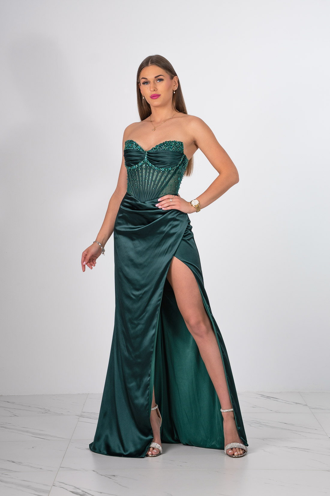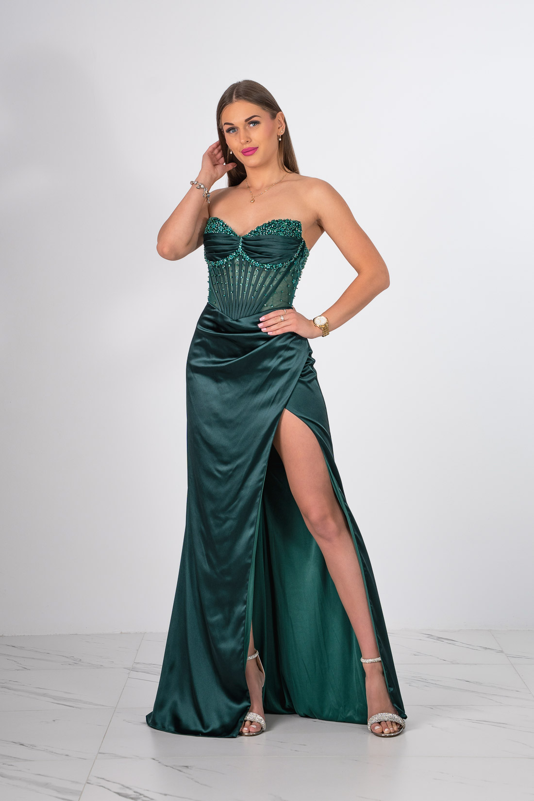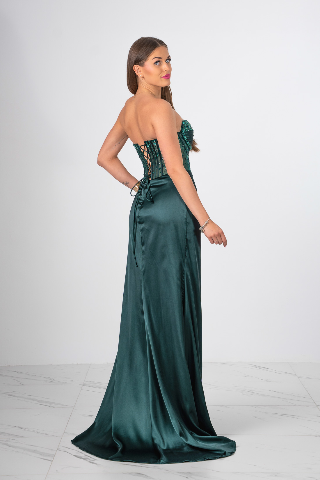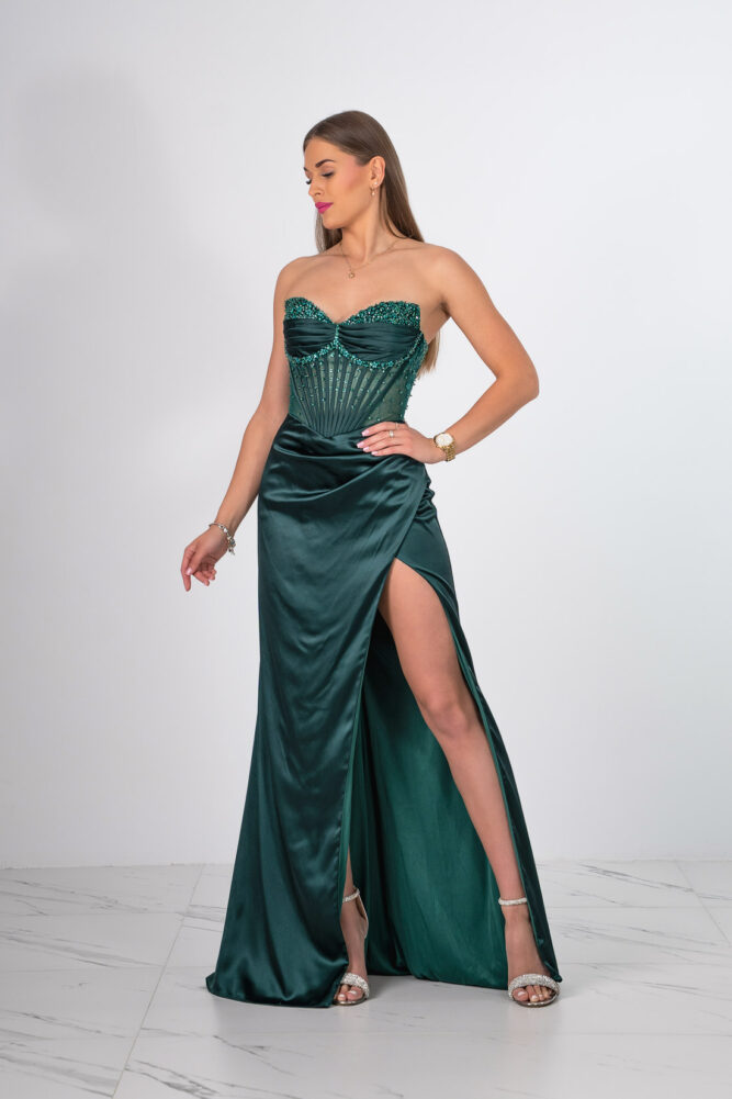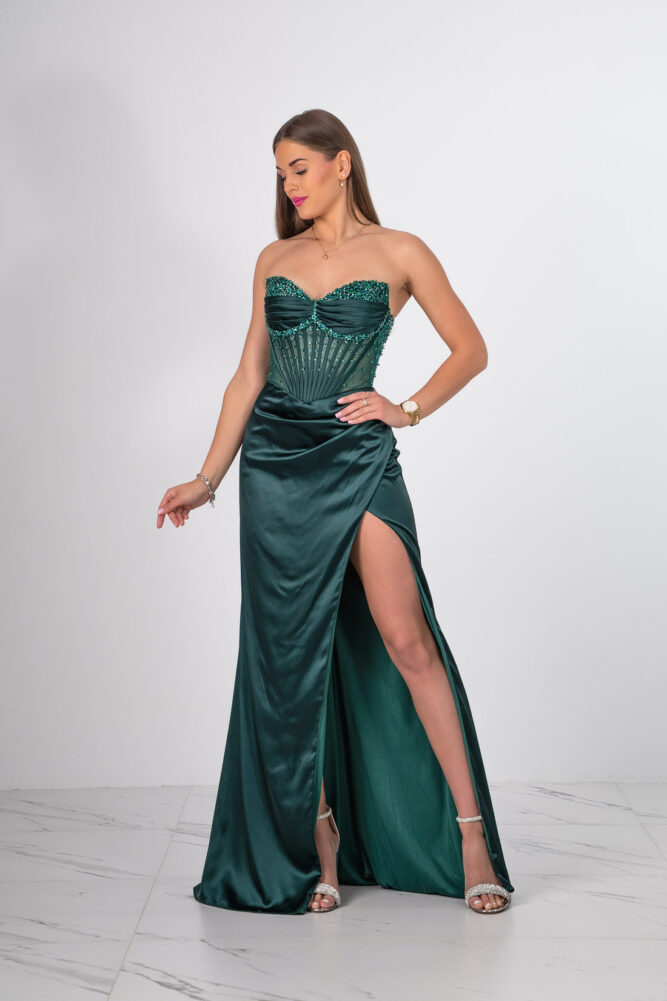 SUKIENKA GORSETOWA O DŁUGOŚCI MAXI VERA BUTELKOWA ZIELEŃ