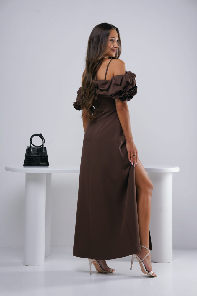 SUKIENKA HISZPANKA Z RÓŻAMI OLIVIA MAXI BUTELKOWA BRĄZOWA