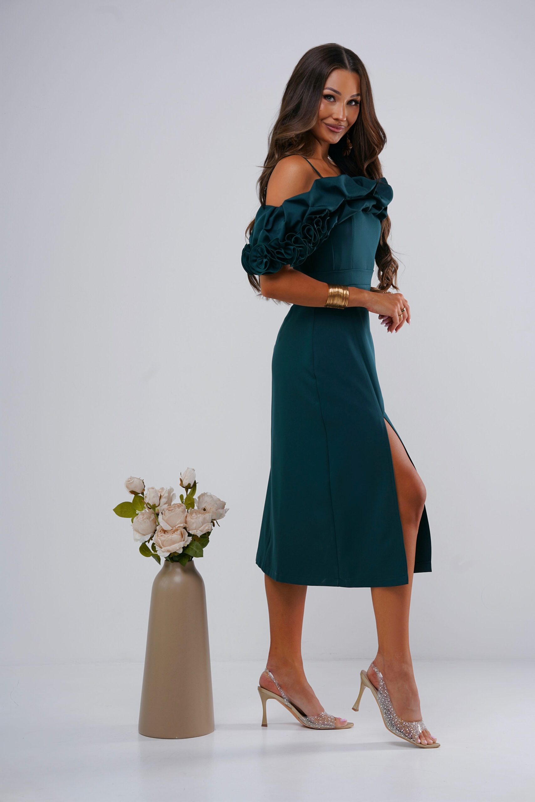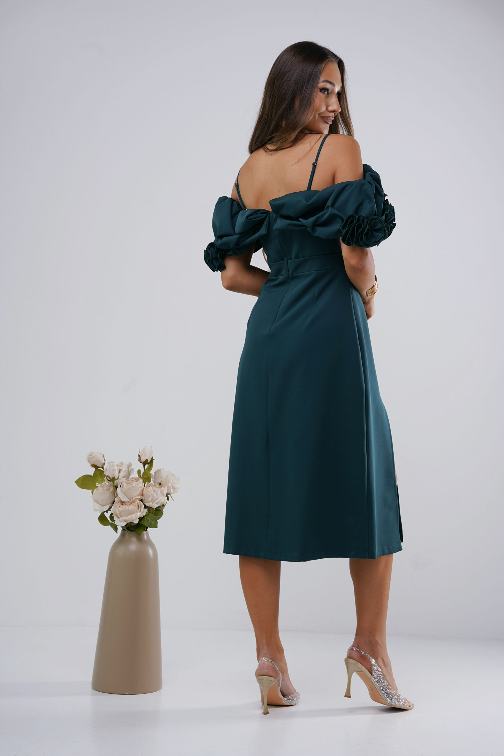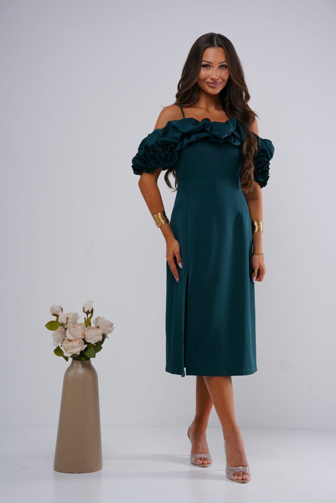 SUKIENKA HISZPANKA Z RÓŻAMI OLIVIA MIDI BUTELKOWA ZIELEŃ