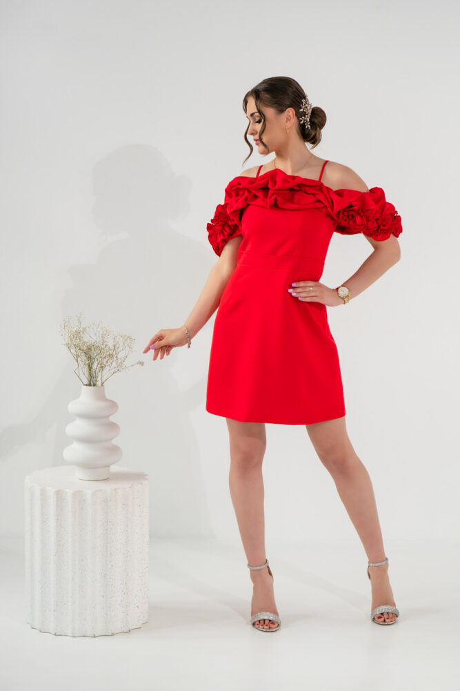SUKIENKA KLASYCZNA ZDOBIONA RÓŻĄ SARA CZERWONA